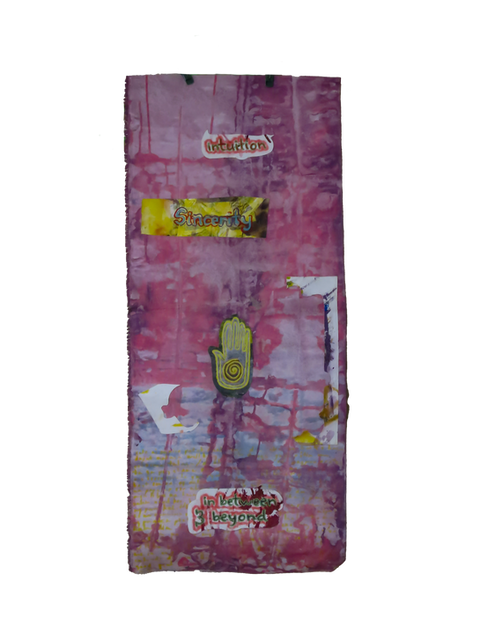 Borrowing words, icons, symbols, and images associated with healing and recovery from sources that span from spiritual practices to mobile games, Soriano effectively stitches pieces of intention and energy and presents them as scrolls or banners that emit a sense of encoded well-being in the immediate space. Painted canvases formed as sculptural flowers in bloom create a foliage around the gallery, allowing for the space’s structural and conceptual bendability. Tensegrity sculptures from previous exhibitions are also represented–mostly found objects from home and the artist’s locality–objects trying to find harmony with each component's mechanized tensions, weights, and integrities. Finally, publications including a selected book of paintings from the artists’ archive, and a mind-map of thoughts throughout the project reveal Soriano’s openness to articulate and explore possibilities and potentials, and transcend his own autocritique.
